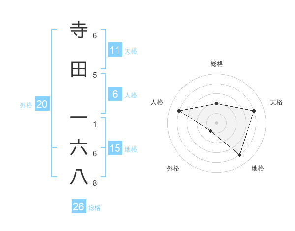 寺田 一六八さんを姓名の画数から五運を鑑定