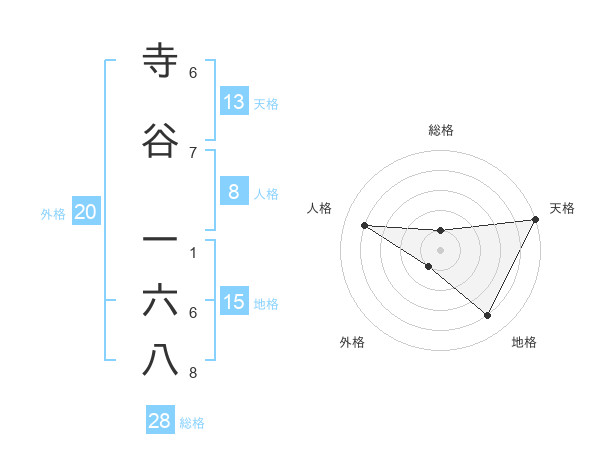 寺谷 一六八さんの総格は28画の1点!