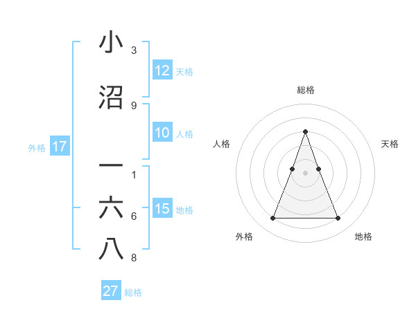 小沼 一六八さんを姓名の画数から五運を鑑定