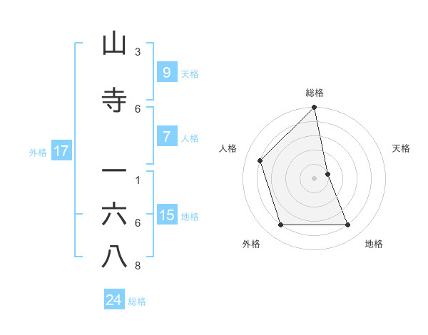 山寺 一六八さんを姓名の画数から五運を鑑定