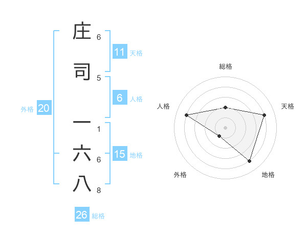 庄司 一六八さんを姓名の画数から五運を鑑定