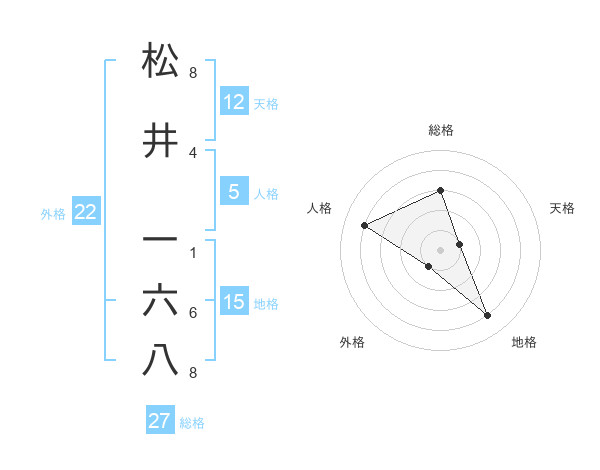 松井 一六八さんの総格は27画の3点