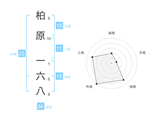 柏原 一六八さんを姓名の画数から五運を鑑定