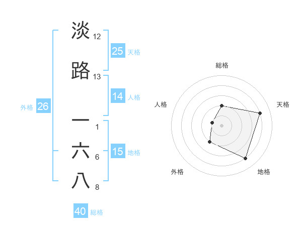 淡路 一六八さんを姓名の画数から五運を鑑定