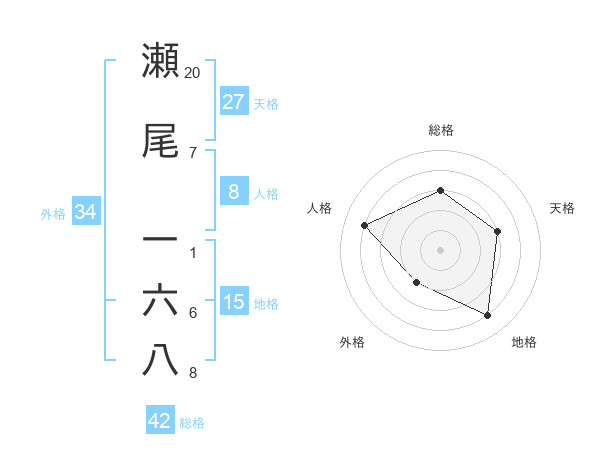 瀬尾 一六八さんを姓名の画数から五運を鑑定