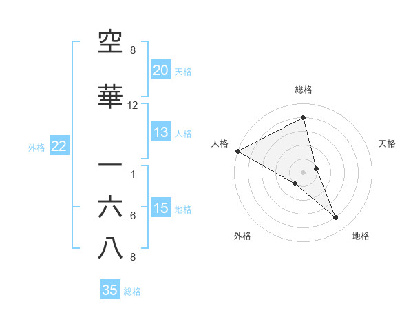 空華 一六八さんの天格は20画の1点!