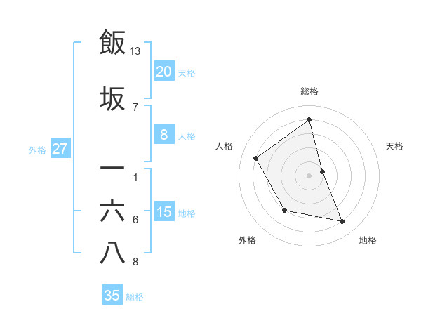 飯坂 一六八さんの総格は35画の4点!