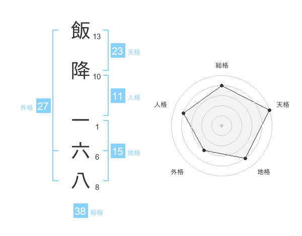 飯降 一六八さんの総格は38画の4点!