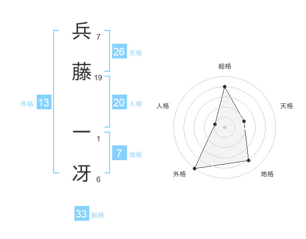 兵藤 一冴さんを姓名の画数から五運を鑑定