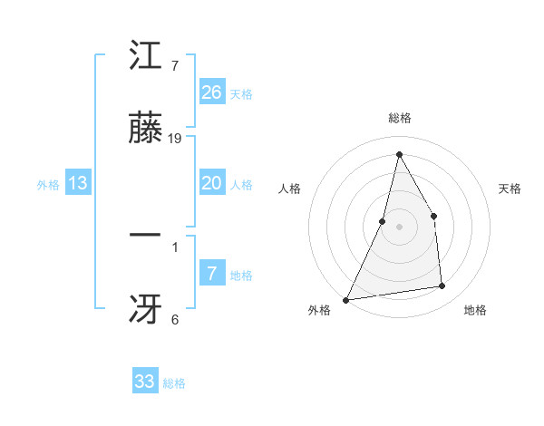 江藤 一冴さんの総格は33画の4点!
