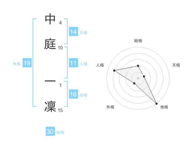 中庭 一凜さんを姓名の画数から五運を鑑定