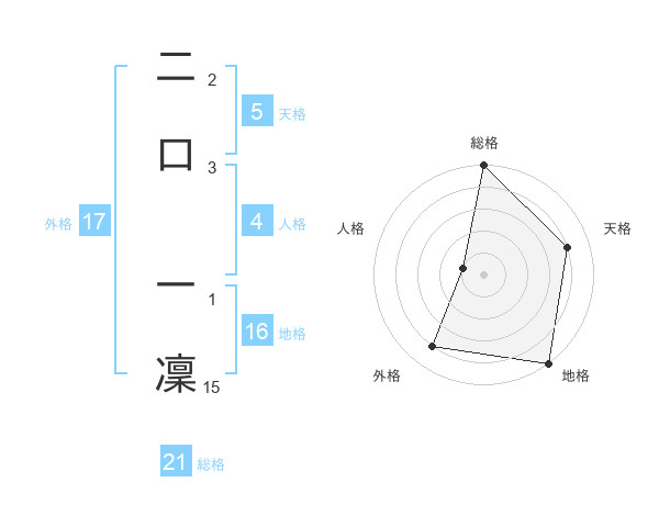 二口 一凜さんの総格は21画の5点!