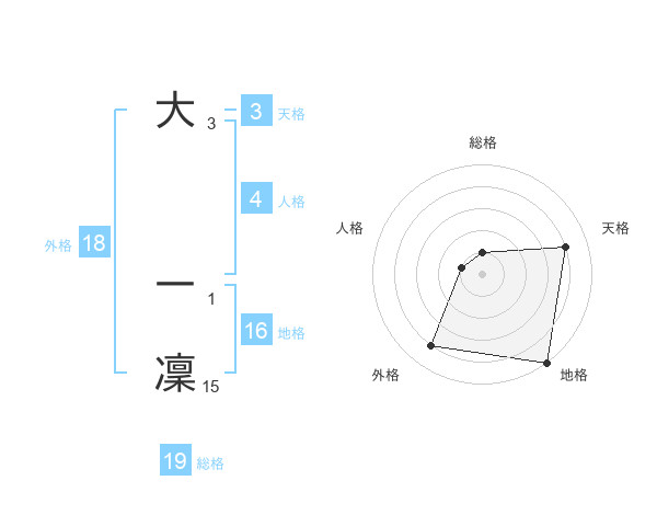 大 一凜さんの総格は19画の1点!