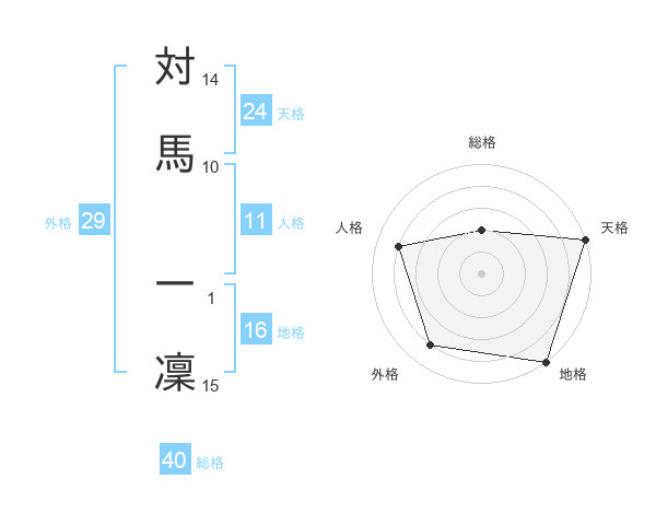 対馬 一凜さんの天格は24画の5点!