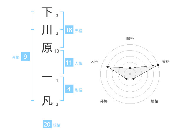 下川原 一凡さんの総格は20画の1点!