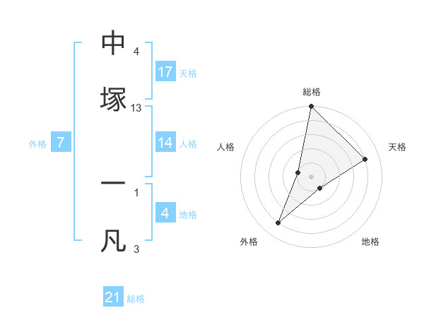 中塚 一凡さんの総格は21画の5点!