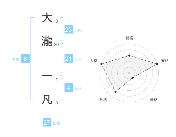 大瀧 一凡さんを姓名の画数から五運を鑑定