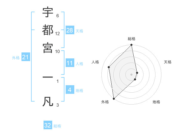 宇都宮 一凡さんを姓名の画数から五運を鑑定