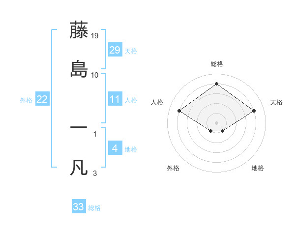 藤島 一凡さんを姓名の画数から五運を鑑定