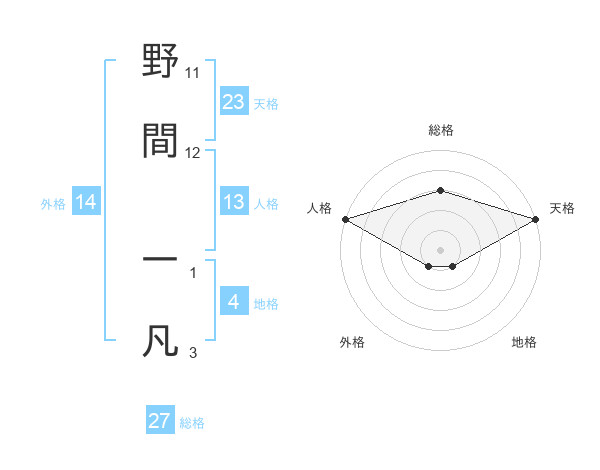 野間 一凡さんの天格は23画の5点!