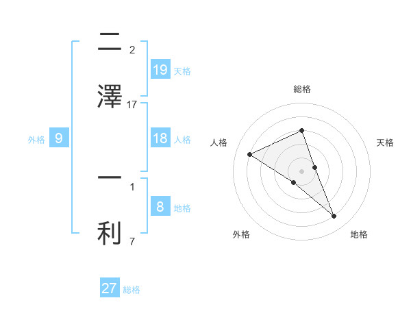 二澤 一利さんの総格は27画の3点!