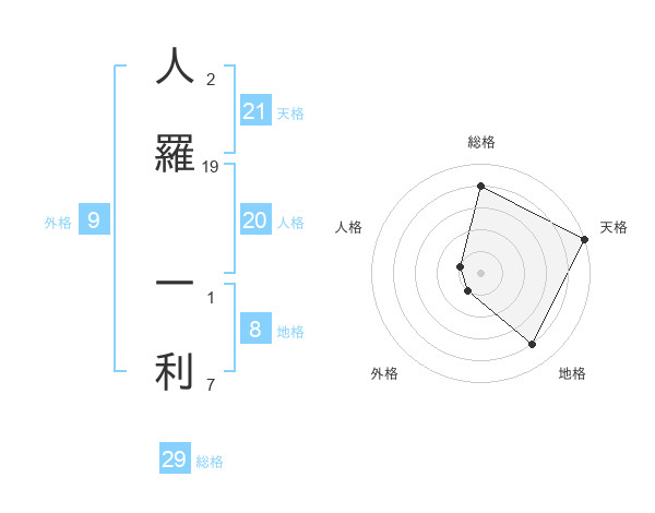 人羅 一利さんの総格は29画の4点!