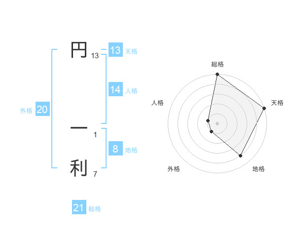 円 一利さんの総格は21画の5点!