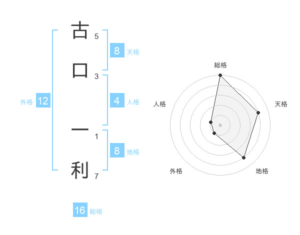 古口 一利さんの地格は8画の4点!