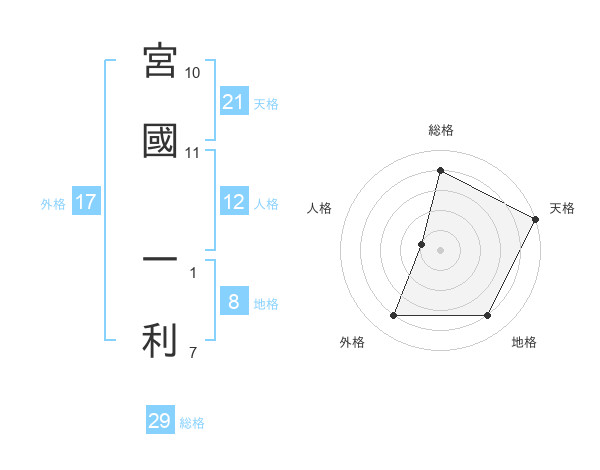 宮國 一利さんの天格は21画の5点!
