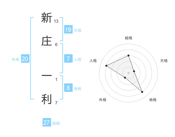 新庄 一利さんの天格は19画の1点!