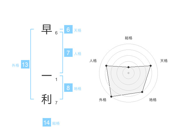 早 一利さんの外格は13画の5点!