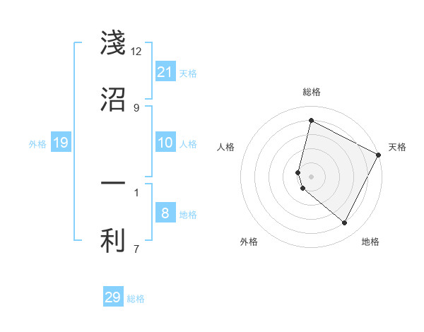 淺沼 一利さんの天格は21画の5点!