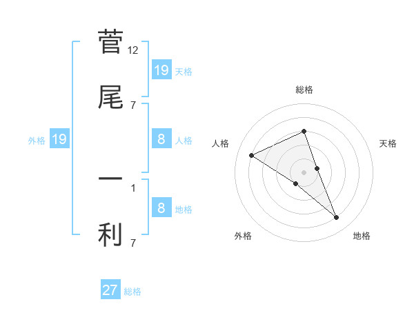 菅尾 一利さんを姓名の画数から五運を鑑定