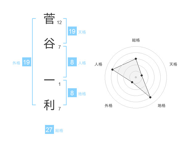 菅谷 一利さんを姓名の画数から五運を鑑定