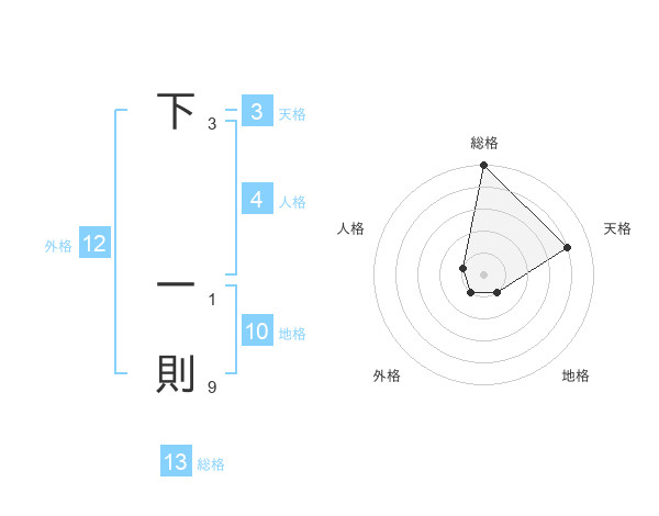 下 一則さんの総格は13画の5点!