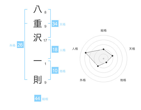 八重沢 一則さんを姓名の画数から五運を鑑定