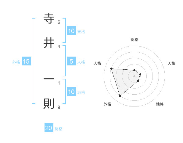 寺井 一則さんの総格は20画の1点!