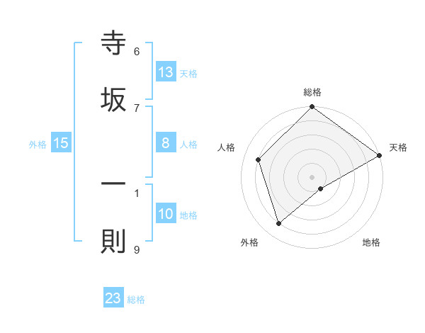 寺坂 一則さんの総格は23画の5点!