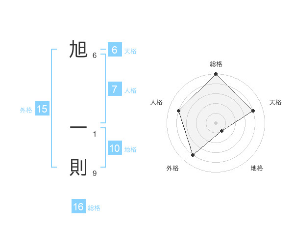 旭 一則さんの総格は16画の5点!