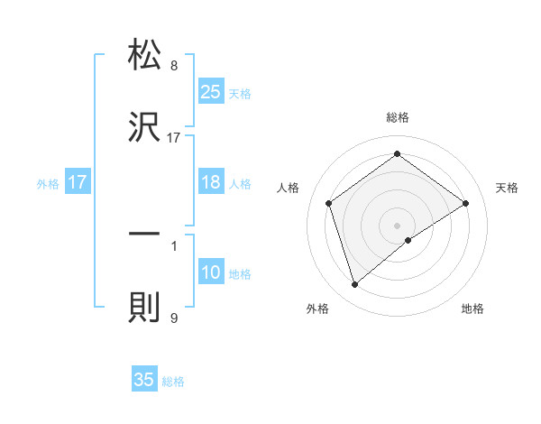 松沢 一則さんの天格は25画の4点!
