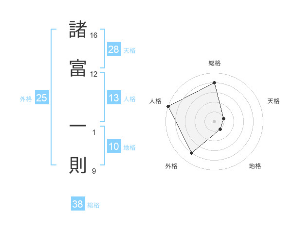 諸富 一則さんの総格は38画の4点!