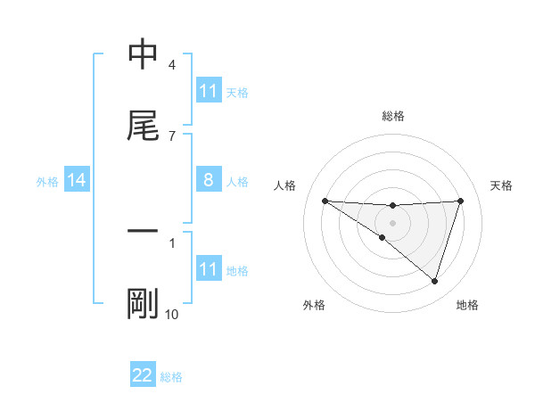 中尾 一剛さんの総格は22画の1点!