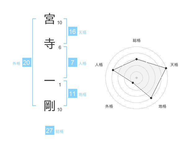 宮寺 一剛さんの総格は27画の3点!