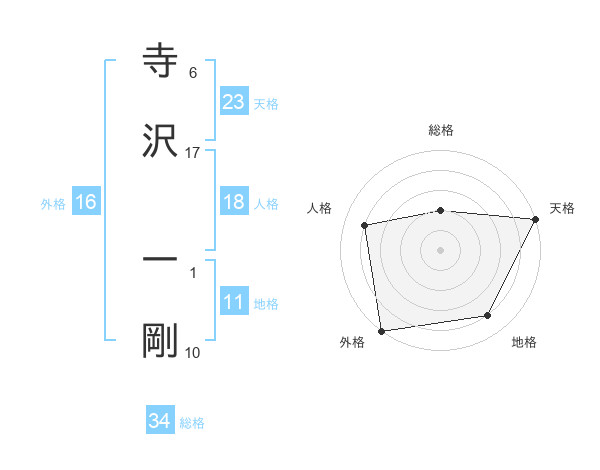 寺沢 一剛さんを姓名の画数から五運を鑑定