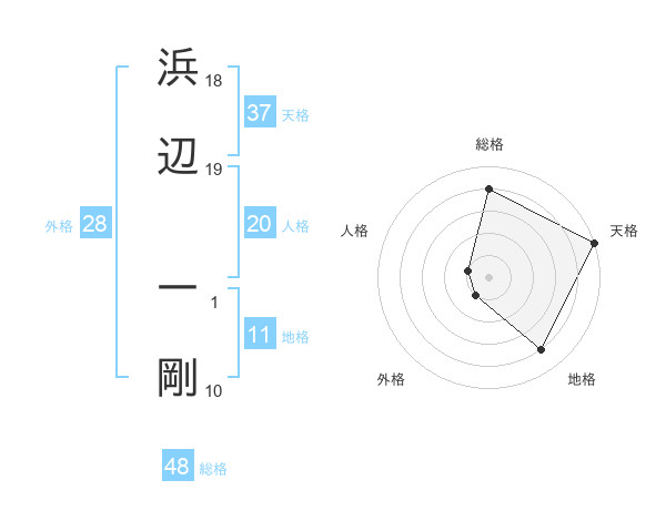 浜辺 一剛さんを姓名の画数から五運を鑑定