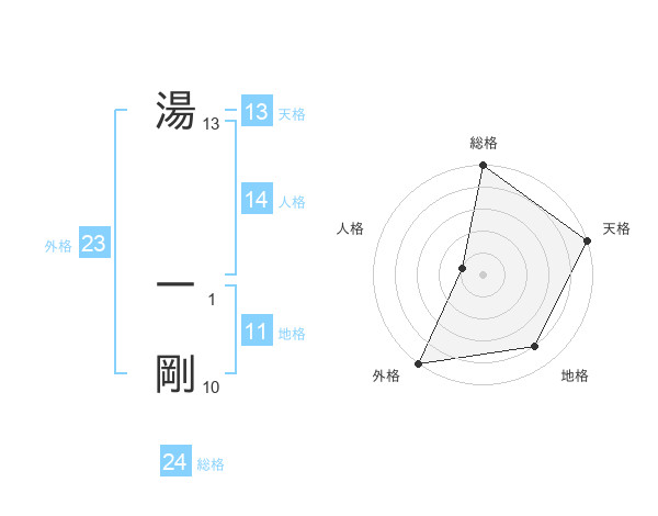 湯 一剛さんの総格は24画の5点!