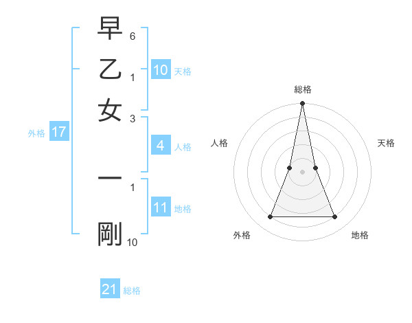 早乙女 一剛さんの総格は21画の5点!