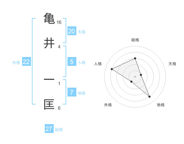 亀井 一匡さんの総格は27画の3点!