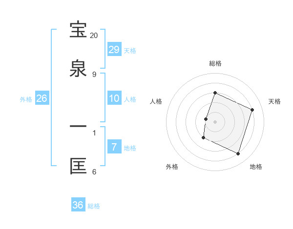 宝泉 一匡さんを姓名の画数から五運を鑑定