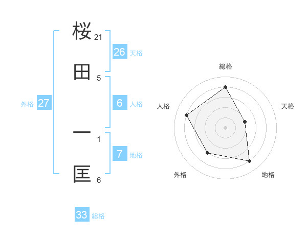 桜田 一匡さんを姓名の画数から五運を鑑定